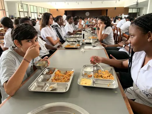 Hyderabadi food is very different from what we get in Mombasa. For instance, we have learnt to like vegetables - people here somehow make vegetables taste so good! One other point we observed was that in Mombasa the food doesn’t really have many spices added in but in Hyderabad, the food is quite spicy. It has taken us quite a while to get used to the amount of spices in the food. At the beginning, some of us weren’t able to finish any of our meals because we weren’t able to handle the amount of spice in the food. But slowly we have started to enjoy the burst of flavours in every bite we take! During an excursion, we had a chance to visit some of the famous restaurants and we particularly liked the food served in a local restaurant called Hotel Shadab. The food was great -we ate a very famous dish of rice and cooked meat called Hyderabadi biryani. This was very delicious but obviously quite spicy! When it comes to food, Hyderabad is most well-known for its biryani as well as many iconic chicken dishes. The sweet dishes are also delicious but have a lot of sugar. We have been eating jalebi, gulab janum and double ka meetha. They taste like heaven, especially when eaten just after a hot meal! We can also buy food from the Academy's tuck shop. The tuck shops in Hyderabad are a bit different to Mombasa. Here it is open twice a week whereas in Mombasa it is open every day. There is also a wider variety here and we are finding it to be a bit cheaper.